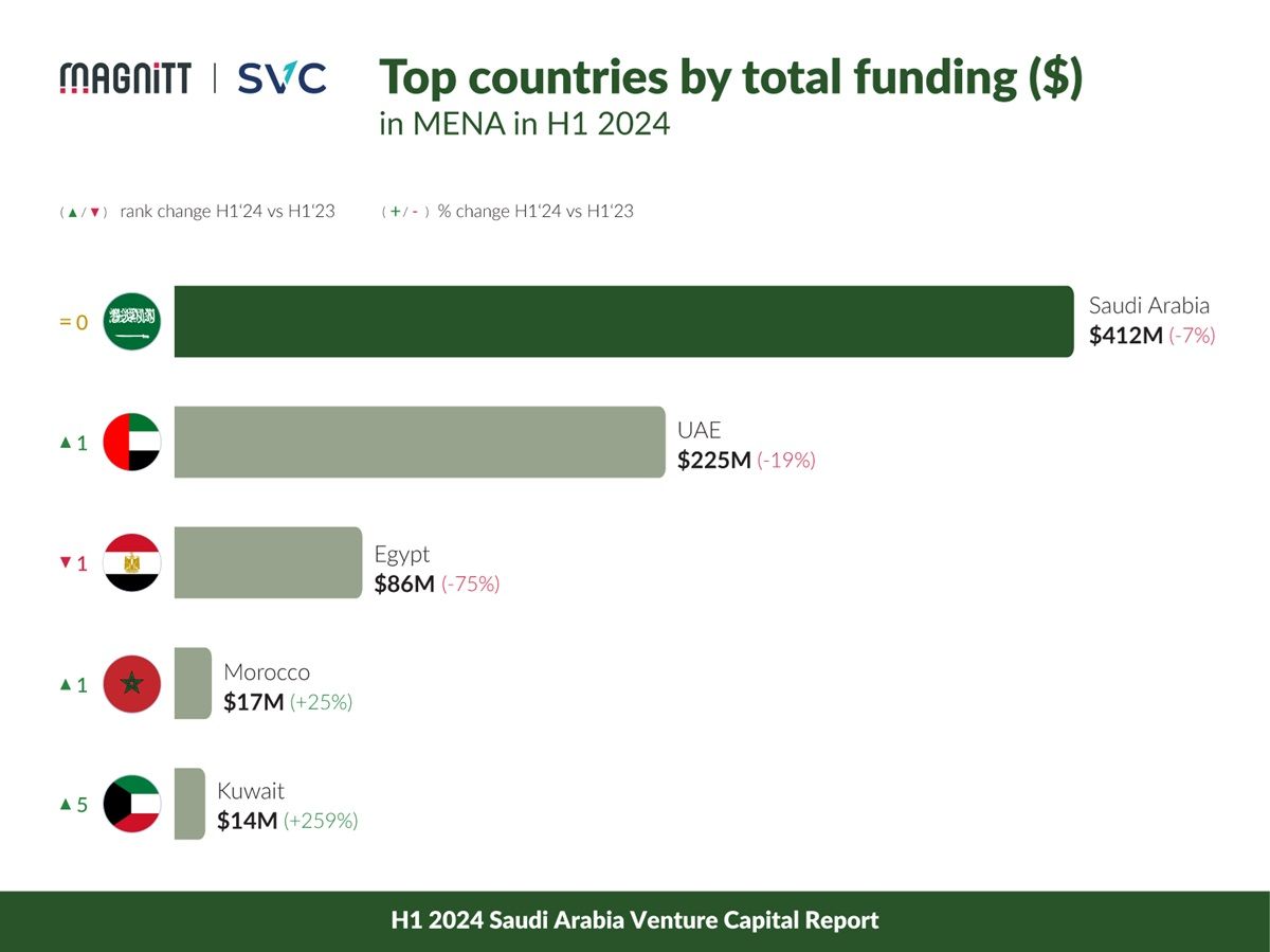 Saudi Arabia has led MENA VC funding by a remarkable proportion, compared to other GCC countries, throughout H1 2024.