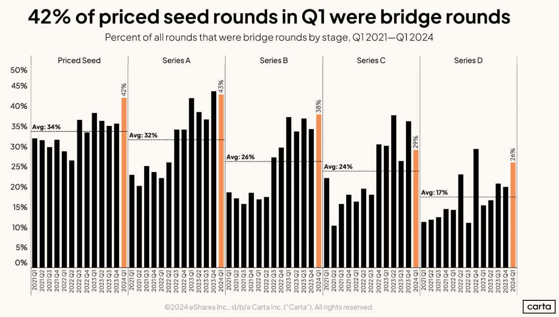 The report shows that nearly half of all Seed rounds need bridge funding to keep going.