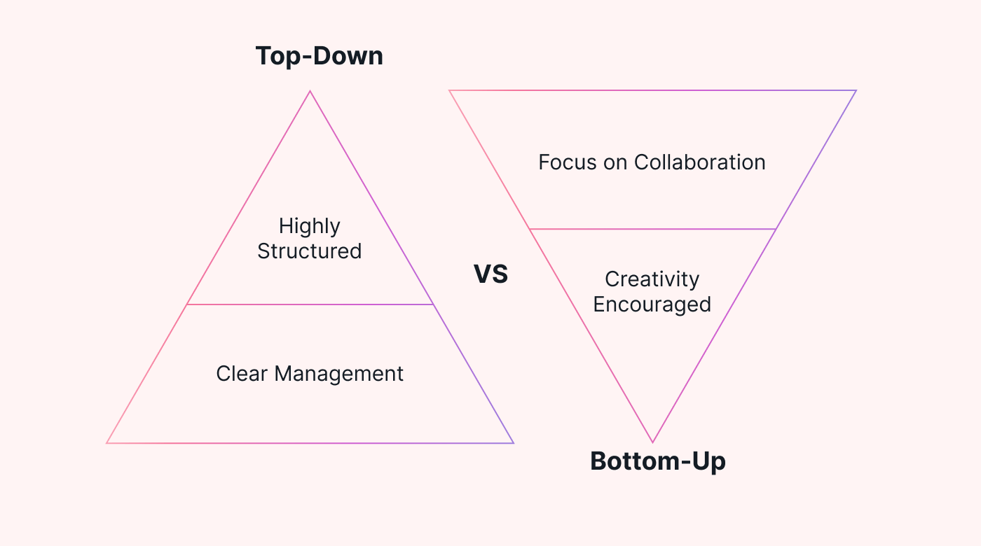Now, letβs be clear about one thing: itβs often misconstrued that top-down organizations and highly-structured, and bottom-up organizations focus more on collaboration where creativity is encouraged.